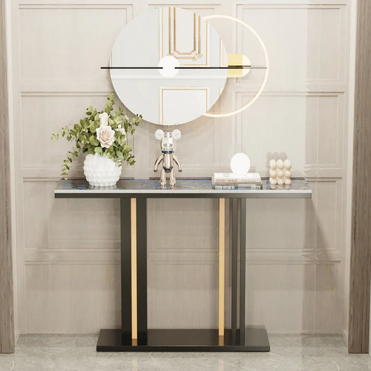 Rectangular Silver Mirrored Entryway Console Table with Gold Rim