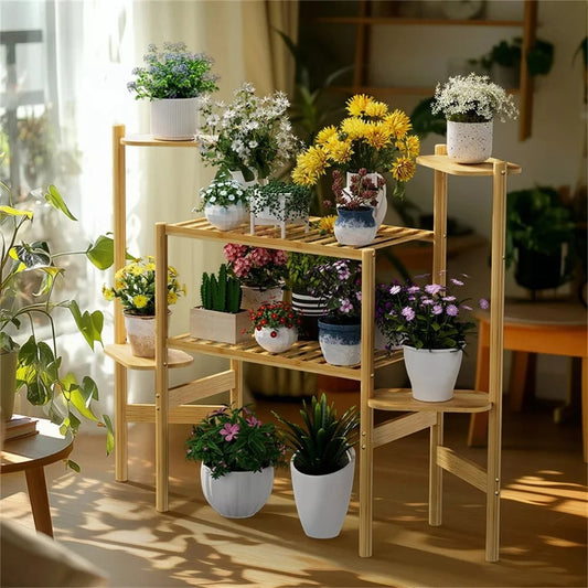 6-Tier Bamboo Corner Plant Shelf – Tall Indoor/Outdoor Display Rack for Home & Garden