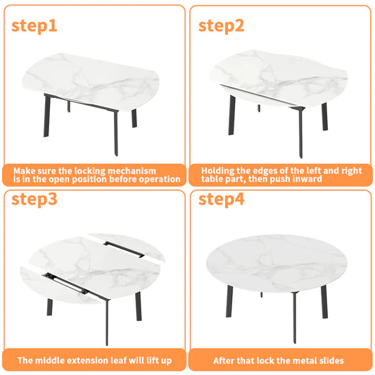 Round Extendable Dining Table 103CM-130CM (31.5'' to 51.2’')